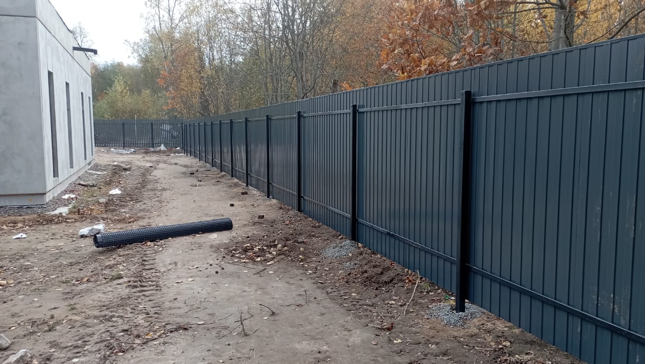 Высота забора: стандарт 1,5–2,0 м (подбирается под задачу и нормы).