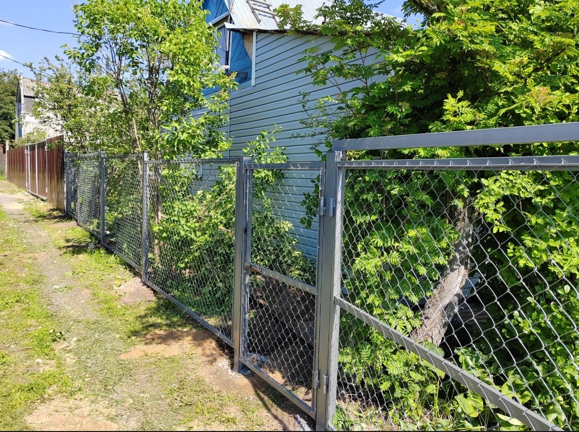 Ограждение из сетки-рабицы — это быстрый, недорогой и простой способ отгородить дачу, огород, вольер или временную территорию.